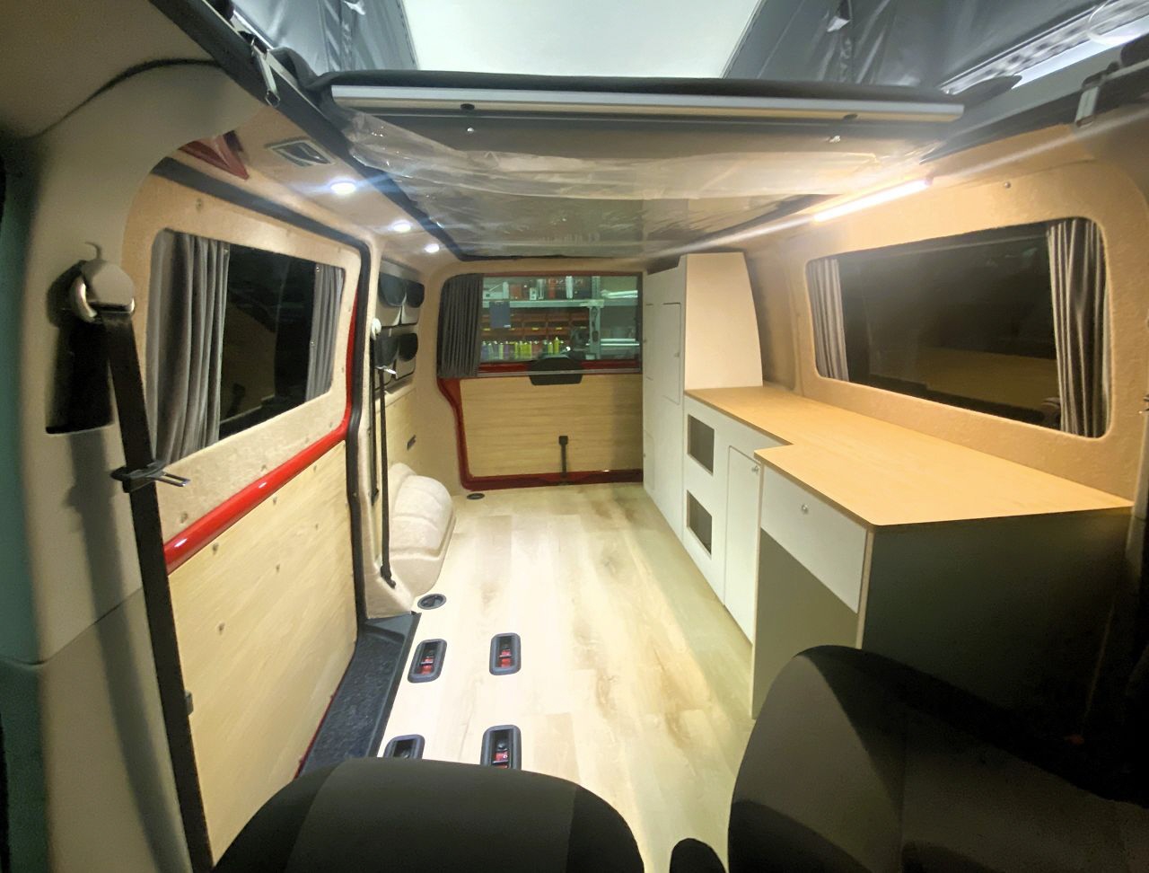 Wir laden Dich ein - wirf einen Blick auf unser neuestes Projekt! Ein T6 in rot aus 2018 bekommt einen ganz neuen Campingausbau. Möbelzeile mit Spüle, Kocher, Wasser, Kompressorkühlschrang und viel Stauraum. Ein Loungemöbel zum gemütlichen Chillen ist der nächste Bauabschnitt! Das SCA Dach kannst Du bereits sehen - der Bulli ist bereits komplett entdröhnt, isoliert und mit unserem 12V und 230V Modul ausgestattet. Autoterm Standheizung ist auch drin! Wir haben auch alles für einen 3. Einzelsitz vorbereitet - kannst Du aber auch weglassen wenn er Dir im Weg ist! Bleib dran - dieser Capmervan ist im Laufe des Jänner 2026 fertig und wird einen sehr attraktiven Preis haben!