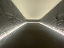 SCA 290 vorne hoch / Zeltbalgfarbe grau / Belüftung mit Moskitonetz und Verdunkelung / Open Sky